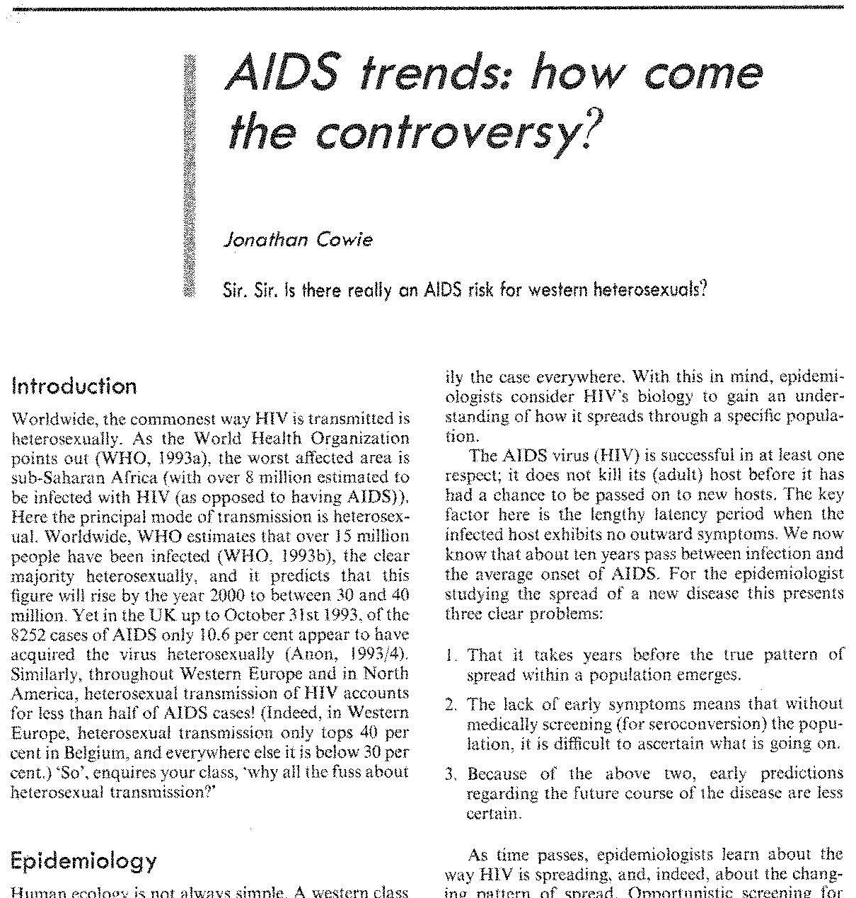 ![]() AIDS trends: how come the controvery?