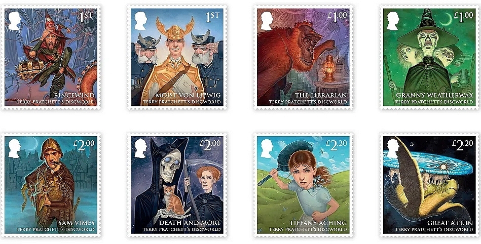 Late Summer 2023 Terry Pratchett stamps launched by the Royal Mail. Our genre wing's (SF² Concatenation) co-founding editor, the physicist Graham Connor, was a huge Terry Pratchett fan. Though personally I am not that into fantasy, I did have the privilege of meeting Terry a number of times. (This is not that big a deal as it might sound as we both regularly attended Eastercons in the 1980s.) An early encounter included a 1980s Eastercon when he came up to me saying: 'I'm a published author. Buy me a drink.' Being then only just free of two degree years' worth of student poverty, I declined. If he was offended by my not providing him with an offering to Bacchus, he got me back years later when Terry and I breakfasted at the 1990 Dortmund Eurocon. We were at the toast and marmalade stage when I asked him whether he would kindly autograph a 'Discworld' book of his. As he was doing it, I said it was not for me but the son of a friend. He quipped back, 'That's what they all say.'
