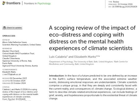 Autumn 2024 Climate scientist distress has been reviewed. Every now and then I am asked when my next climate change book will be out? My wonderful copy editor for the last two (climate books 2 & 3) from Cambridge University Press when working on both each time commented to me, "we are ****ed aren't we?" And of course, regular visitors to this site know of my opinion as to whether we can beat the climate crunch. The last book came out a tad over a decade ago and, to be honest, the climate and impact trajectories as to where we are going have not changed and, while new science has provided extra detail, there has been little that significantly adds to matter. This lack of motive combined with looking at climate and impact scenario forecasts, which are incredibly depressing, has meant that while I now keep a loose eye on the new science, several years ago I moved my principal focus away from current and prospective climate change to the deep-time evolution of life and planet (news of this new area to come in a few months time). Indeed, I have been increasingly aware, both from the literature and through coffee/meal encounters with others at climate symposia, that I am not alone; that depression among climate scientists has become a thing. This month has seen a psychological review of the issue. It concludes that: Climate scientists have an essential role to play in helping society and policy makers understand the implications of climate change and identifying the most useful responses. As such, it is integral that the psychological wellbeing of this group is understood and cared for. Well, good luck with that: nothing is going to change our being on a runaway bus. As was said in the closing scene of the final episode of The Young Ones, "Lookout, CLIFF!!!" The psychological review is Calabria, L. & Marks, E. (2024) A scoping review of the impact of eco-distress and coping with distress on the mental health experiences of climate scientists. Frontiers in Psychology, 15, 1351428. |