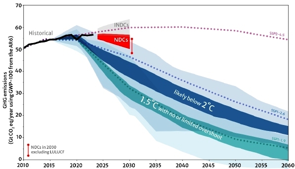 ![]() Source: FCCC COP Secretariat (2024). Nationally determined contributions under the Paris Agreement. UN Framework Convention on Climate Change. FCCC/PA/CMA/2024/10 Emissions here excludes those from land-use change. © FCCC COP Secretariat, 2024. Non-commercial reproduction permitted. |