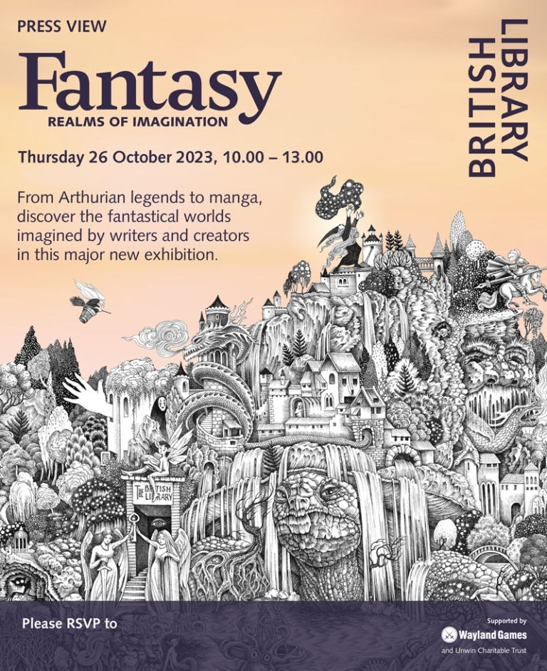 Autumn 2023 British Library fantasy exhibition. The press launch of the British Library's 'Fantasy: Realms of the imagination' exhibition was one of the last jollies of the year for a couple of us attached to SF² Concatenation's genre wing. Though I am decidedly more into science fiction -- especially hard SF and wide-screen (interstellar) space opera -- than fantasy, I have occasionally been known to imbibe: indeed fantasy is the other side of the speculative fiction coin.