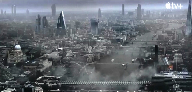 ![]() London 2070AD as portrayed in Extrapolations. St. Pauls far left and the Shard far right are two of a number of familiar landmarks.