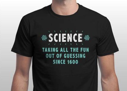 New Year 2023 At Christmas I almost ended up with this T-shirt! Fortunately, I dodged that particular bullet… Now, you may be wondering why I do not like this T-shirt (see picture left)? After all, it seems to be a pro-science garment… Right? Wrong! Notwithstanding, I hypothesise, that science never took the fun out of anything – science is fun – guessing is an important part of science, plus it is fun seeing if it -- the guess -- is right. |