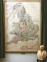 ![]() The two earliest geological maps of England and Wales hang side-by-side at the foot of the stairs at the Geological Society. There is the William Smith’s map of 1815, made from him travelling the country and when needed, digging down through the soil. And there is this one: the Geological Society’s own map, issued five years later and drawn by George Bellas Greenough, one of the founders of the Society and its first President. Both are usually covered by a curtain to protect them from the light, so you need to ask to see them. |