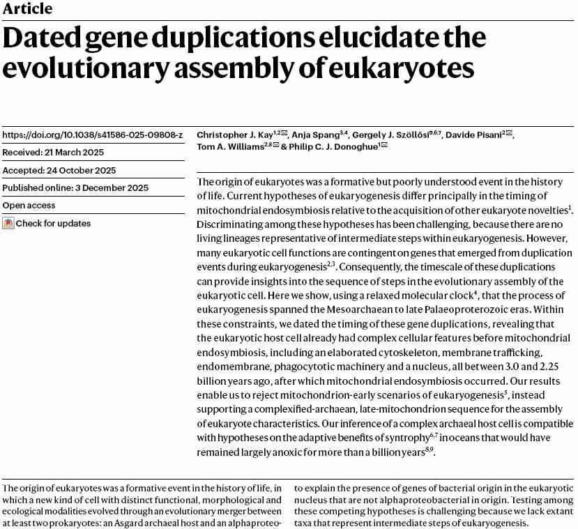 Figure reproduction used under a Creative Commons Attribution 4.0 International License and are from Kay, C. J. et al (2026) Dated gene duplications elucidate the evolutionary assembly of eukaryotes. Nature, vol. 650, p129-140 |
